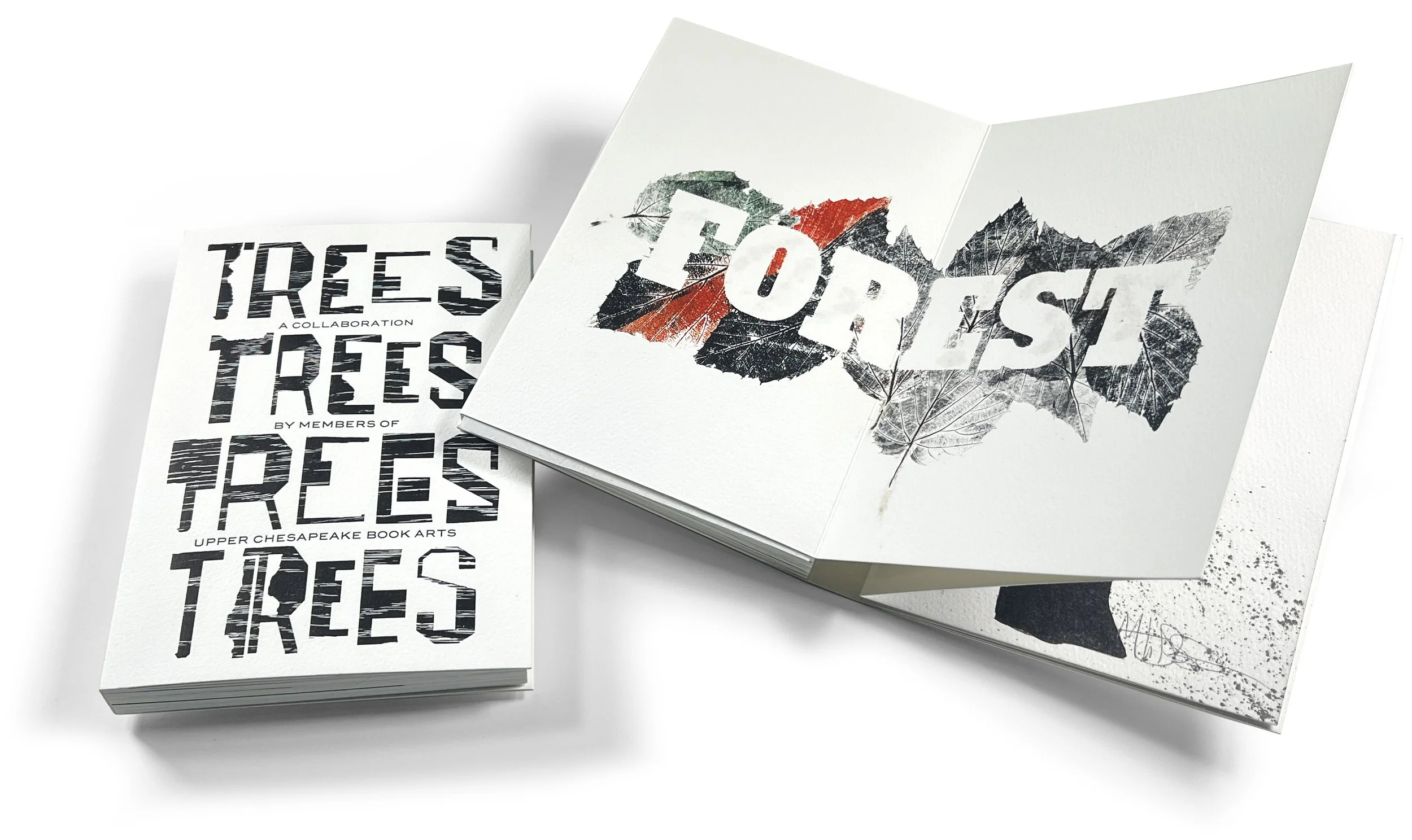 Upper Chesapeake Book Arts has just completed its collaborative book using the subject of “Trees.” The photo shows Ray’s page, as described 4 images below.